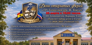 ПУ Гимназия им. В. Топал села Конгаз объявляет набор детей в 1 класс на 2026–2027 учебный год.