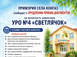 Объявление о проведении публичных слушаний в примэрии села Конгаз