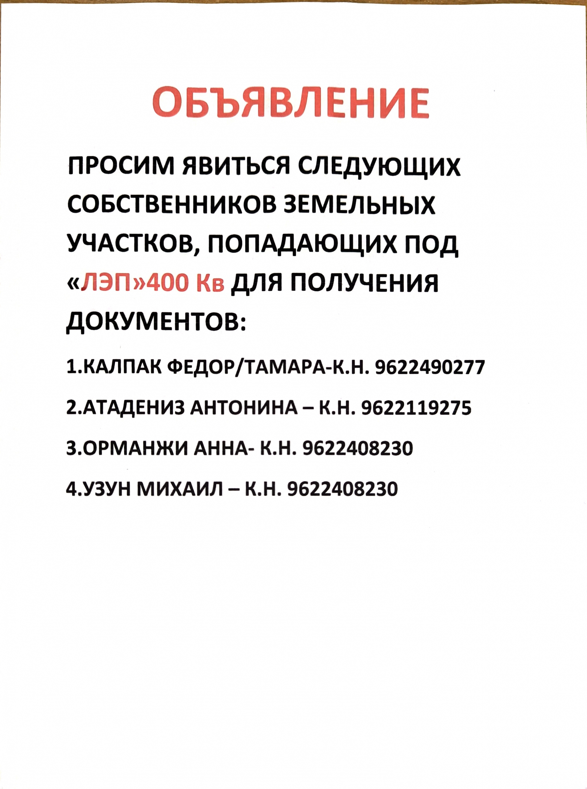 Примэрия села Конгаз информирует о дополнительном списке собственников земельных участков, затронутых строительством линии электропередачи ЛЭП-400 кВ «Вулканешты – Кишинёв».