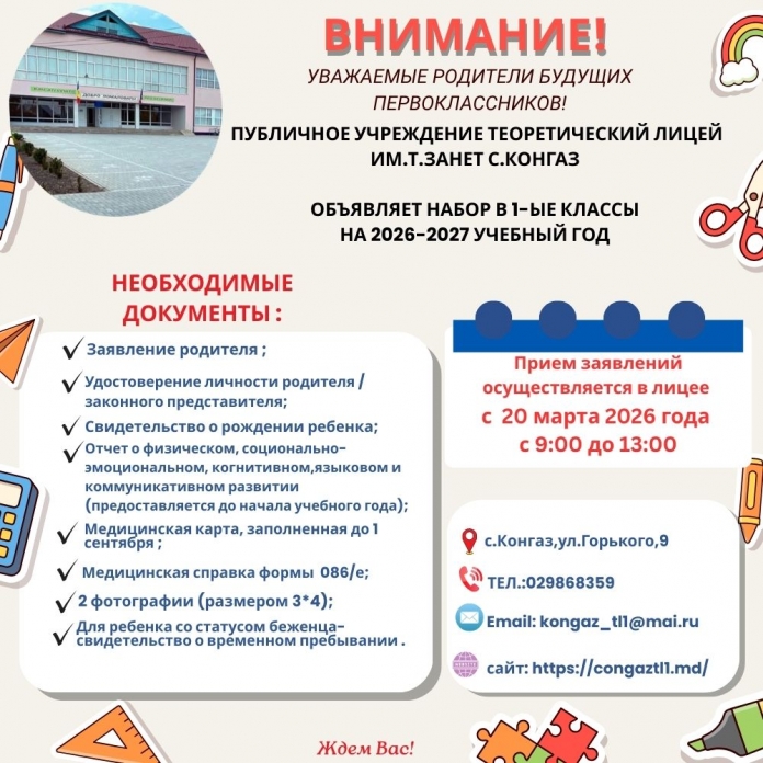 В Публичном учреждении Теоретического лицея им. Т.Занет объявлен набор детей в первые классы на 2026- 2027 учебный год!