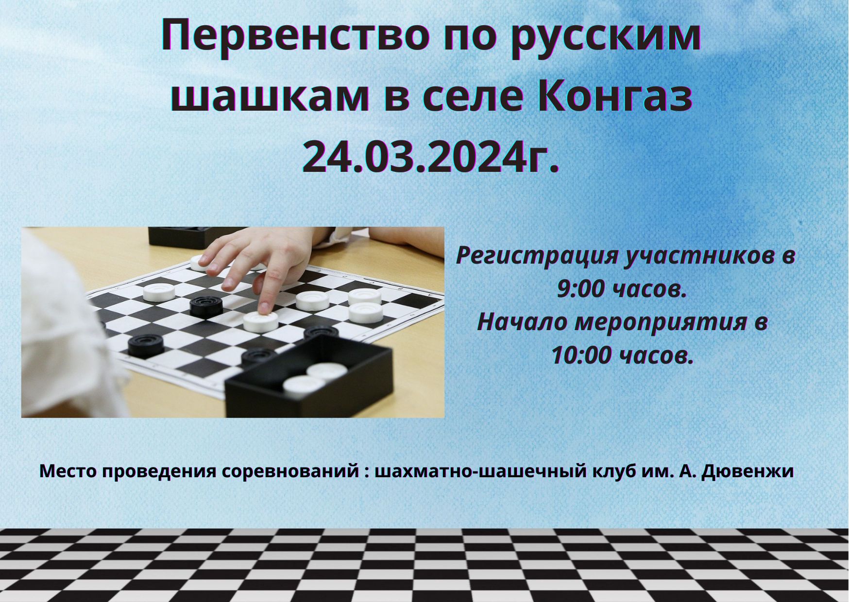 В воскресенье, 24 марта, в селе Конгаз пройдет первенство села по русским шашкам. Соревнования будут проходить в шахматно-шашечном клубе им. А. Дювенжи.